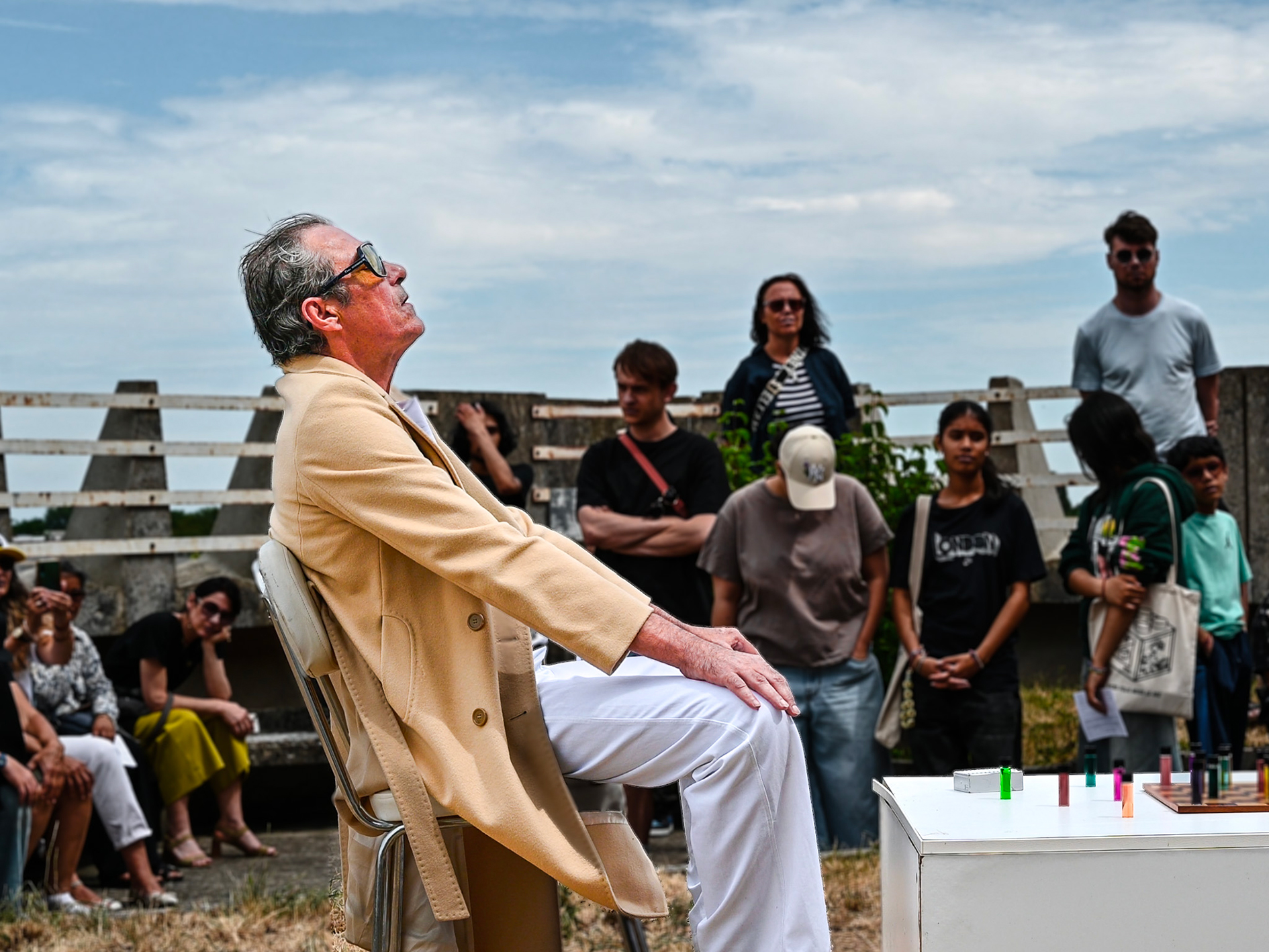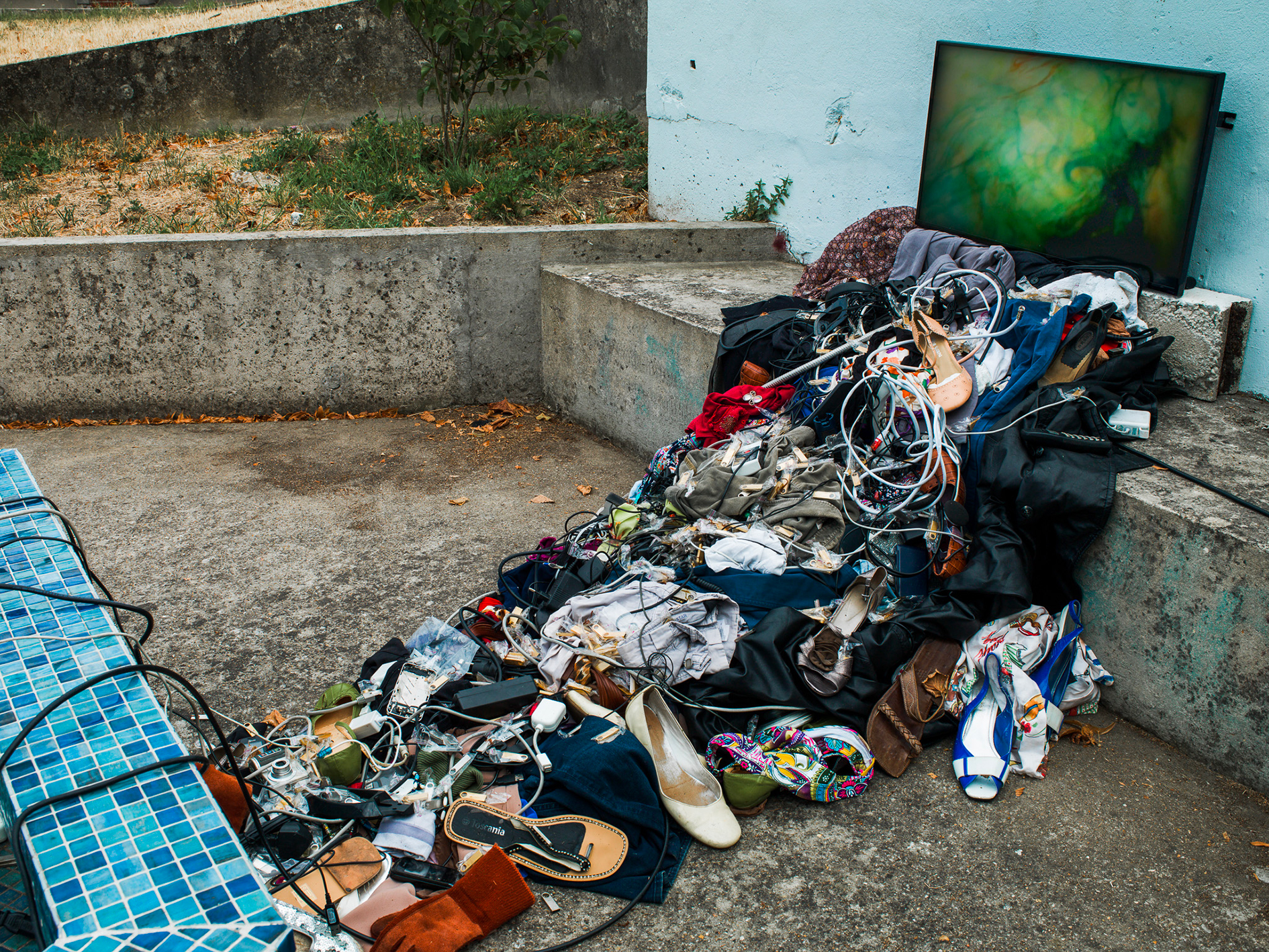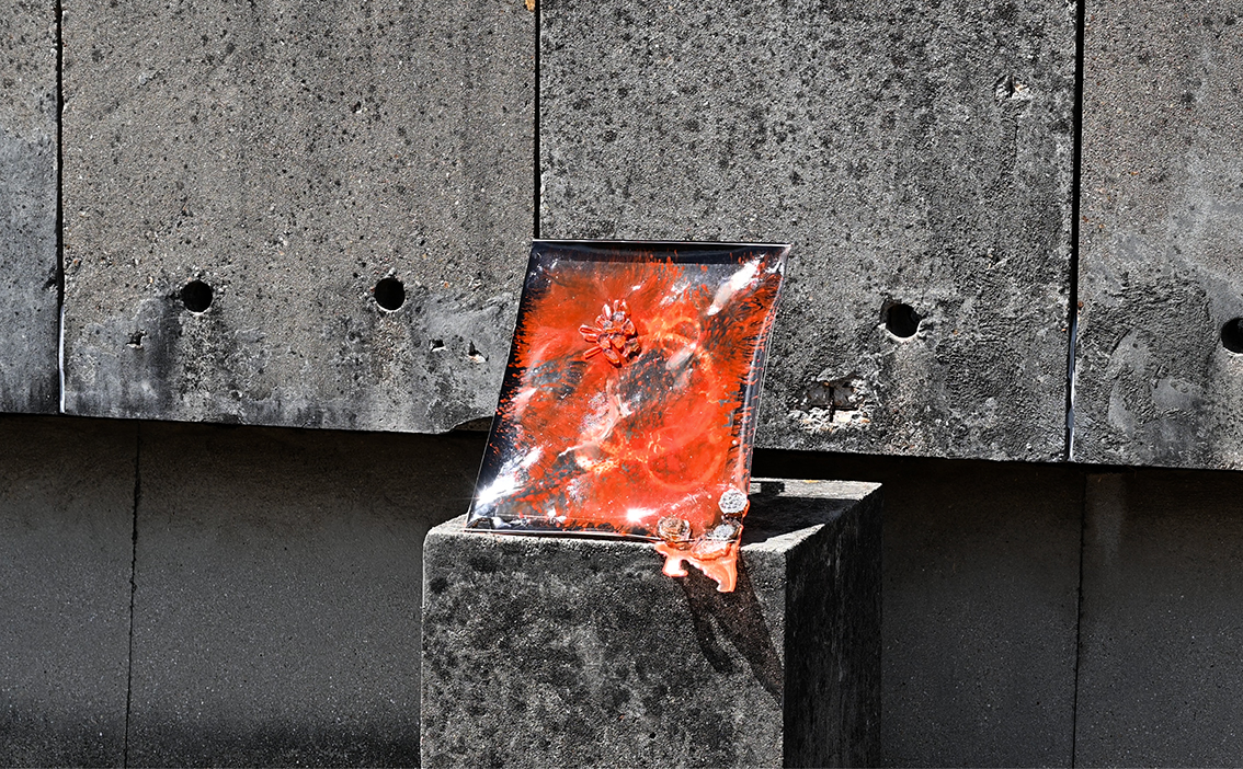On the steel and cement frame, Véronique Bourgoin reactivates the strategic concrete seats, remnants of former workers’ agoras, to deploy contemplation stations that showcase the 10-year process of research and visual and artistic creations of the “Periodic Table of Common Elements,” which intersects with performances, photographs, sculptures, videos, and ceramics.
